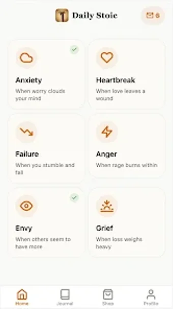 Daily Stoic: Quote & Letter es una aplicación diseñada para brindar apoyo emocional a través de la sabiduría estoica. Ofrece una variedad de citas instantáneas y cartas profundas que abordan problemas contemporáneos como la ansiedad, el desamor y la procrastinación. La app permite a los usuarios seleccionar su lucha actual y recibir orientación inmediata, facilitando una experiencia de lectura elegante y sin distracciones. Además, su funcionalidad offline asegura que toda la sabiduría esté disponible en cualquier momento y lugar.